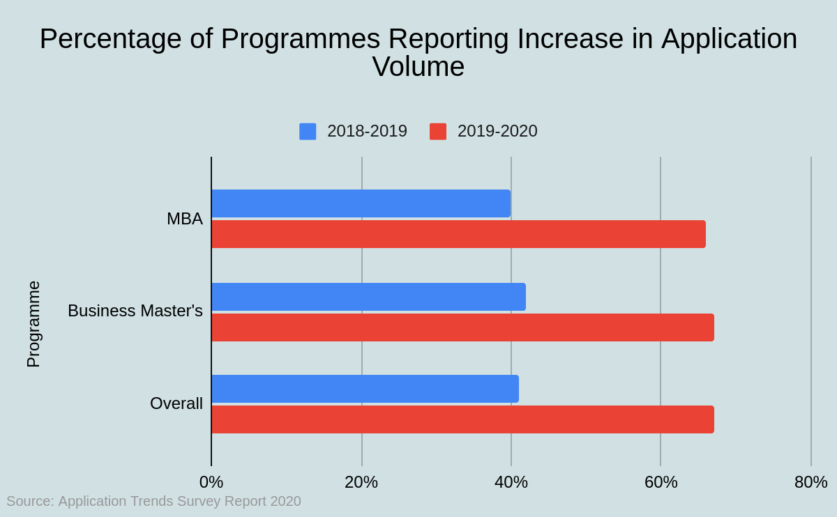 The report highlighted that the applications at participating institutions rose by two-thirds from 2018-19 despite the Covid-19 pandemic. The GMAC pointed out a number of reasons for the same including flexible admission processes adopted by B-schools and extension of deadlines to boost acceptance rates. The extended application deadlines gave a chance to studentsimpacted by the economic downturn to apply to a business school.