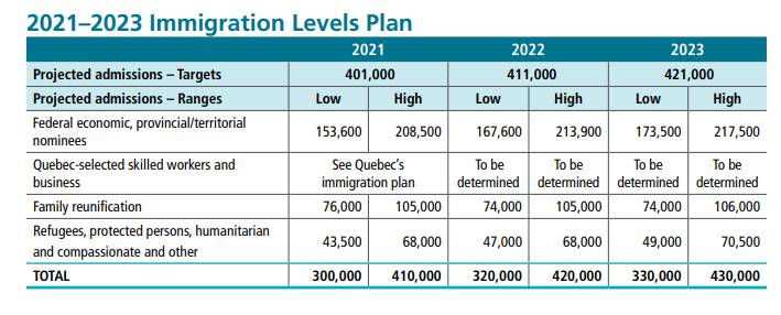 Prior to the COVID-19 pandemic, the target was set at 341,000 new immigrants.